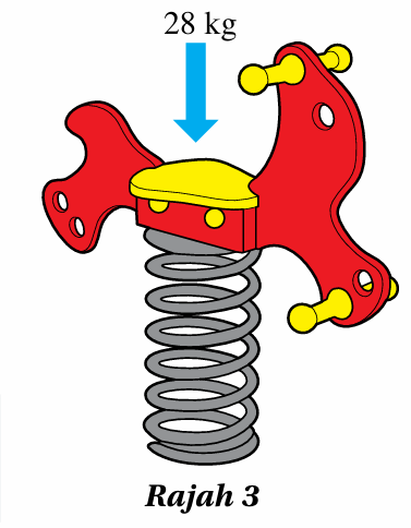 Rajah 3 menunjukkan sebuah alat permainan kanak-kanak. Spring bagi alat tersebut mengalami pemampatan sebanyak 5.0 cm apabila seorang kanak-kanak berjisim 28 kg duduk di atasnya. Berapakah pemalar spring itu dalam unit N m–1?