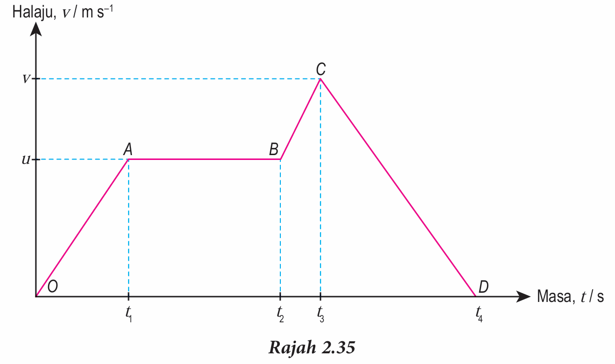 Berdasarkan Rajah 2.35, huraikan pergerakan objek dari O sehingga D secara kualitatif.
