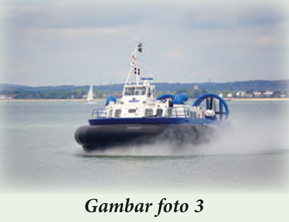 Gambar foto 3 menunjukkan sebuah hoverkraf yang dapat bergerak di darat atau di atas permukaan air dengan pantas kerana disokong oleh suatu lapisan udara yang terperangkap di bawahnya. Hoverkraf yang berjisim 25 000 kg, bermula daripada keadaan rehat dan kipas enjinnya menjanakan satu daya tujahan, F sebanyak 22 000 N.