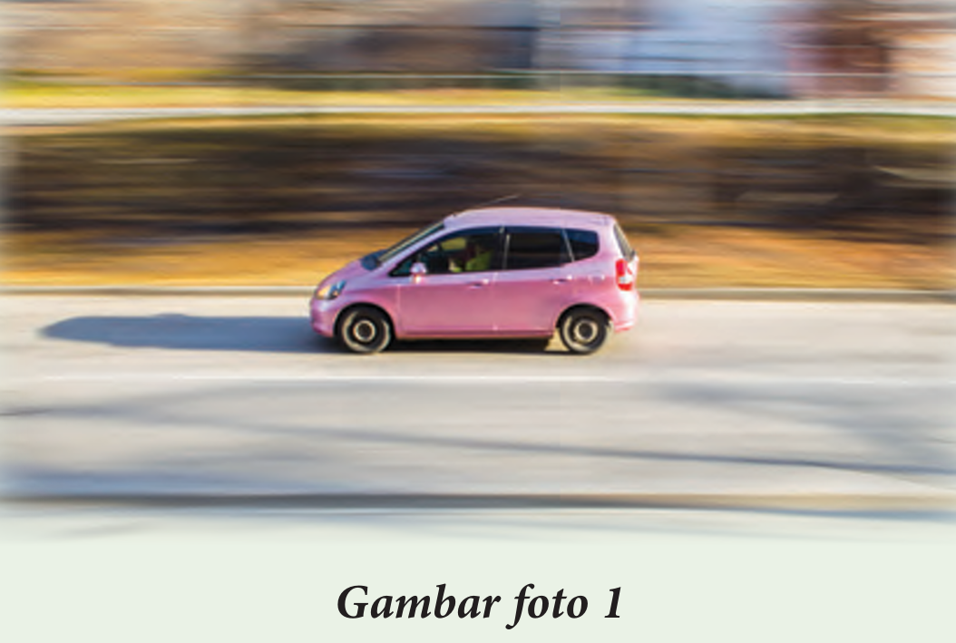 Gambar foto 1 menunjukkan sebuah kereta yang bergerak di atas jalan raya. Pada awalnya kereta itu bergerak dengan halaju seragam 18 m s–1 selama 15 s. Kemudian, kereta tersebut memecut dengan pecutan 1.5 m s–2 selama 5 s. Selepas itu, halaju kereta mula berkurang kepada 15 m s–1 dalam masa 5 s. Kereta itu terus bergerak dengan halaju yang sama selama 10 s dan akhirnya halaju berkurang sehingga berhenti pada t = 50 s.