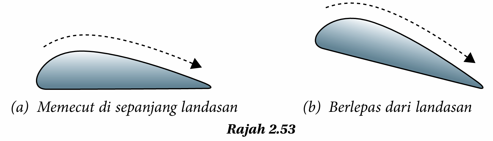 Rajah 2.53 menunjukkan keratan rentas sayap sebuah kapal terbang semasa kapal terbang itu memecut di sepanjang landasan dan mula berlepas dari landasan.
