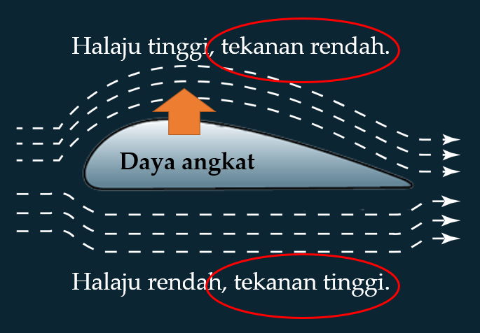 – perbezaan tekanan udara ini menghasilkan satu daya paduan ke atas yang mengangkat kapal terbang naik ke udara