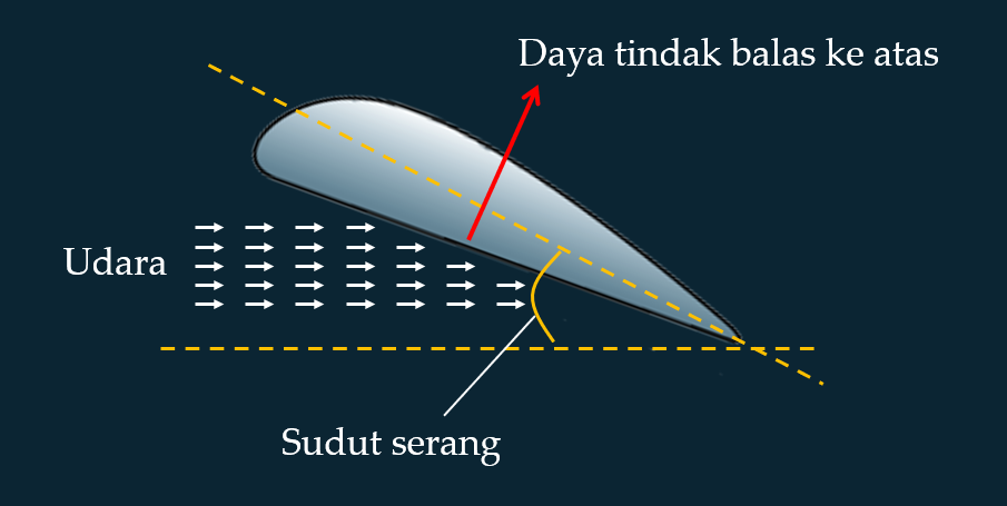 – sayap mengalami daya tindak balas yang menyumbang kepada daya angkat