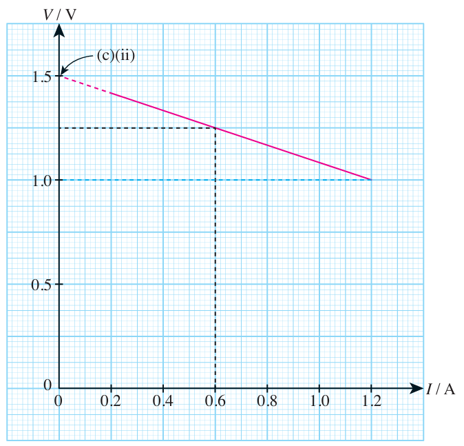 (c)(ii) Lihat dalam graf di atas, V = 1.5 V
