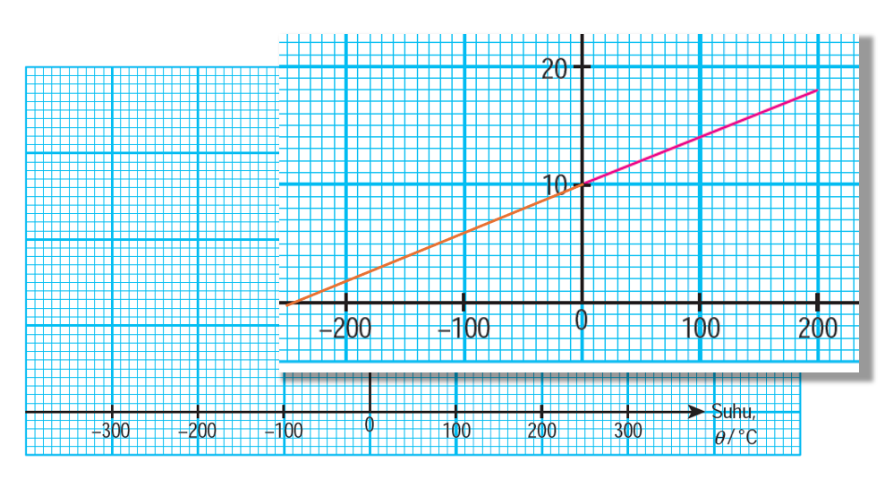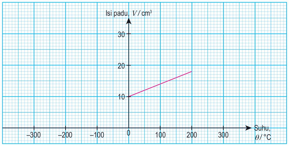 (c) Tentukan nilai V apabila θ = 300°C. Tunjukkan pada graf itu bagaimana anda menentukan nilai V.